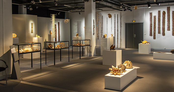Quant à Marie-Noëlle Fontan, elle tisse avec délicatesse, ces éléments naturels que sont les gousses de nos arbres, les racines, les écorces et les fibres. Ses oeuvres sont le résultat d’une rencontre poétique entre le regard de l’artiste et l’infinie variété du monde végétal.